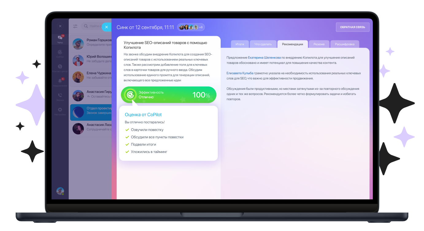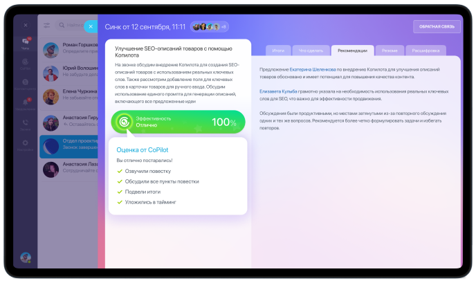 AI анализирует звонки, фиксирует договорённости, даёт обратную связь и учит проводить встречи с пользой