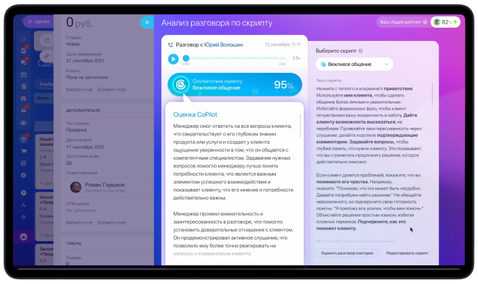AI покажет, насколько звонок соответствует скрипту. Даст рекомендации по улучшению и составит рейтинг менеджеров — всё сам, без вашего участия