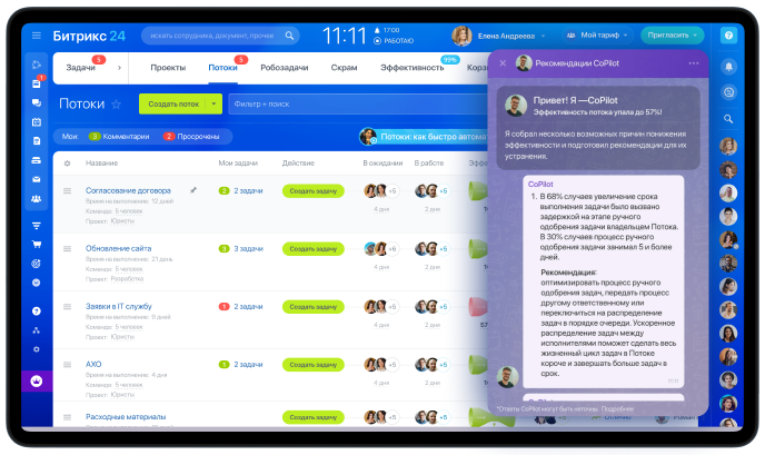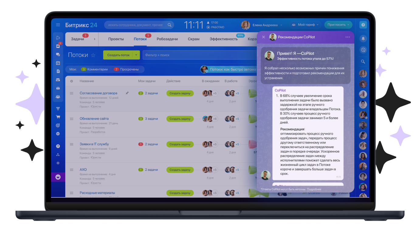 AI сканирует ваши Потоки, находит слабые места и даёт чёткие рекомендации, как работать быстрее и лучше. Вам нужно просто следовать советам