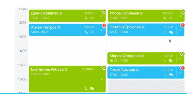 Если клиент не подтвердил запись, вы сразу увидите — можно оперативно позвонить и изменить запись, если нужно